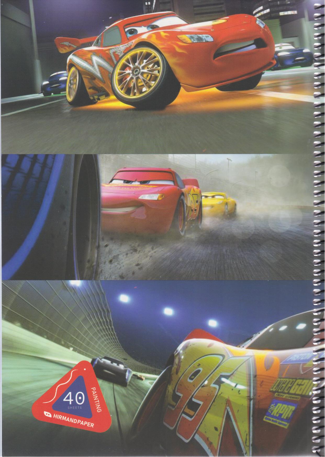 دفتر نقاشی 40 برگ رحلی کارتونی سیم از بغل (هیرمند) - ماشینها