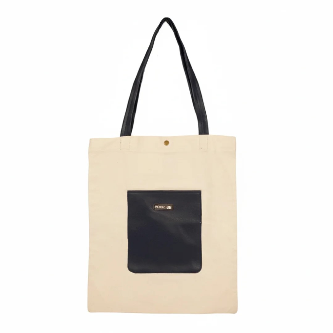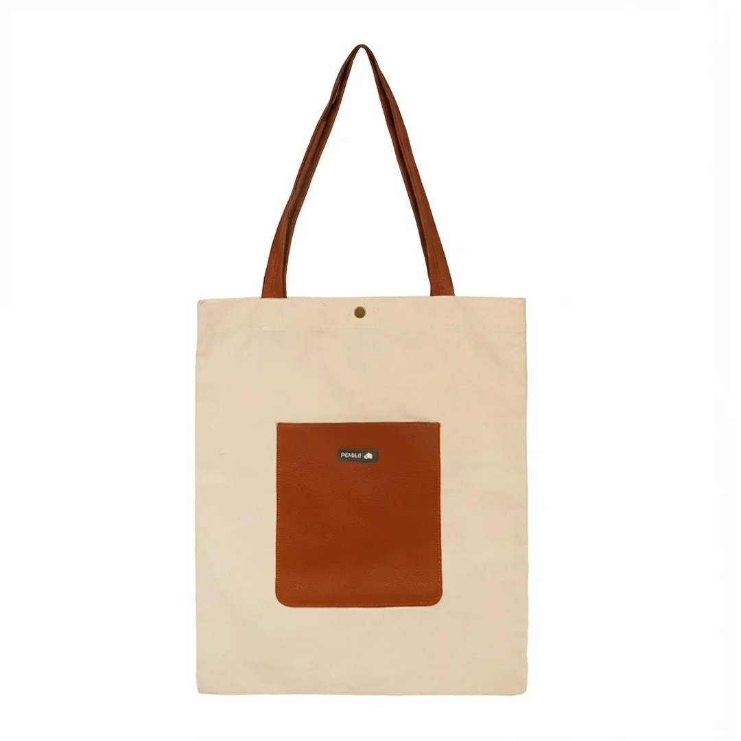 ساک پارچهای جیبدار دستهچرمی بزرگ (پیکولو) - عسلی
