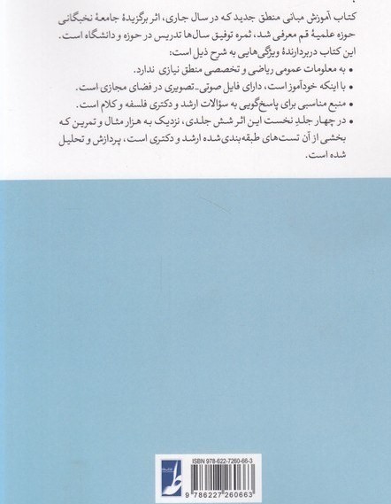 به موضوعاتی همچون قضایای مسوره و احکام آنها در منطق سینوی و گزارههای فاقد سور در منطق جدید و گزارههایی با محمول تک موضعی یا چند موضعی و سور واحد یا سور متعدد و گزارههای مشتمل بر نسبت اینهمانی به همراه تمرین و مثالهای فراوان و همچنین حل تستهای آزمون سراسری میپردازد.