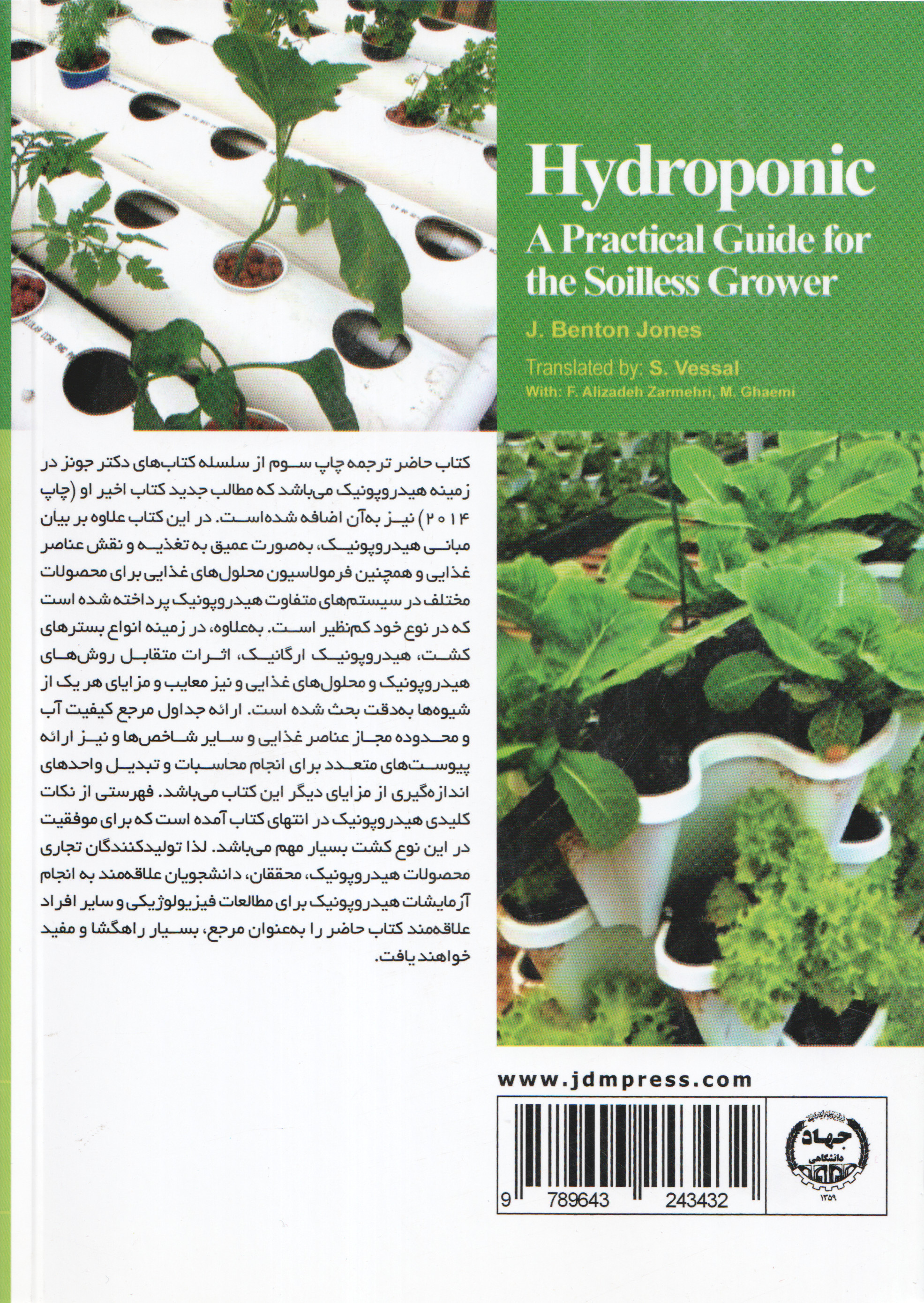 با قرارداشتن بخش قابلملاحظهای از کشور در ناحیه خشک و نیمهخشک و تغییرات اقلیمی که به خشکسالیهای مکرر در اقصی نقاط کشور منجرشده است، چالش کمآبی بهیکی از معضلات جدی در بخش کشاورزی بدل شده است. بخشی از راهحل در مواجهه با چنین پدیدهای رویآوردن به روشهای نوین کشت محصولات کشاورزی از جمله کشت گلخانهای بهصورت هیدروپونیک میباشد که بهدلیل کارآیی بالای مصرف آب میتواند قسمتی از مشکل را برطرف نماید. امروزه در بسیاری از کشورهای توسعهیافته آمریکای شمالی، اروپا، ژاپن و حتی برخی از کشورهای خاورمیانه، تعداد زیادی از محصولات صیفیجات نظیر گوجهفرنگی، خیار، انواع فلفلها و کاهو و نیز گلهای شاخهبریده در شرایط هیدروپونیک با کارآیی و کیفیت بالا تولید میشوند که علاوه بر صرفهجوییهای قابلملاحظه در مصرف آب، بهدلیل جنبههای نسبتا صنعتی آن در اشتغالزاییهای مستقیم و غیرمستقیم نقش بسزایی ایفا مینمایند. کتاب حاضر ترجمه ویرایش سوم از سلسله کتابهای آقای دکتر جی. بنتون جونز در زمینه هیدروپونیک میباشد که مطالب جدید کتاب اخیر او (چاپ ۲۰۱۴) نیز به آن اضافه شده است. لذا این نوشتار را میتوان مجموعه جامعی از تجربیات و آنچه وی در زمینه هیدروپونیک بهرشته تحریر در آورده است، در نظر گرفت. وی مدرک کارشناسی را در علوم کشاورزی از دانشگاه ایلینویز و مدارک کارشناسی ارشد و دکتری خود را از دانشگاه پنسیلوانیا کسب نموده است. او مطالب فراگیر و گستردهای در مورد مباحث هیدروپونیک از خود بهجای گذاشته و بیشتر عمر حرفهای خود را در پروژههای تحقیقاتی و تجاری هیدروپونیک صرف کرده است. دکتر جونز بهعنوان چهرهای متخصص در فیزیولوژی و کاربرد روشهای آنالیزی جهت ارزیابی وضعیت عناصر غذایی در بسترهای کشت و نیز گیاهان مطرح میباشد که این مباحث برای اطمینان از بهینهبودن مقدار عناصر غذایی برای تولید محصولات غذایی در خاک و کشتهای بدون خاک از اهمیت زیادی برخوردار است. وی در مقاطع مختلف در چندین آزمایشگاه آنالیز خاک و گیاه دانشگاهی و تجاری بهعنوان مدیر مسئول تصدی داشته و هماکنون نیز در دو آزمایشگاه و گلخانههای متعدد هیدروپونیک بهکار مشاوره مشغول میباشد. وی بارها از گلخانههای متعدد کشورهای مختلف از جمله آمریکا، کانادا، اروپا و خاورمیانه و حتی ایران بازدید داشته و با نقاط قوت و ضعف کشت هیدروپونیک در اقصی نقاط دنیا کاملا آشنایی دارد. با این اوصاف، کتاب حاضر را میتوان نتیجه تجربیات علمی و مشاهدات میدانی گردآوریشده و ملموس نویسنده در نظر گرفت. در این کتاب علاوه بر بیان مبانی اصلی هیدروپونیک، بهصورت عمیق به تغذیه گیاهی و نقش و کارکرد عناصر غذایی با ارائه فرمولاسیون محلولهای غذایی برای محصولات مختلف در سیستمهای متفاوت هیدروپونیک پرداخته شده است که در نوع خود کمنظیر است. بهعلاوه، در زمینه انواع بسترهای کشت، هیدروپونیک ارگانیک، اثرات متقابل روشهای هیدروپونیک و محلولهای غذایی و همچنین معایب و مزایای هر یک از شیوهها بهدقت بحث شده است. ارائه جدولهای مرجع برای بررسی کیفیت آب و محدوده مجاز عناصر غذایی و سایر شاخصهای مرتبط و همچنین ارائه پیوستهای متعدد برای انجام محاسبات و تبدیل واحدهای اندازهگیری از مزایای دیگر این کتاب میباشد. فهرستی از نکات کلیدی و ملاحظات مهم هیدروپونیک در انتهای کتاب بهطور خلاصه ارائه شده است که برای موفقیت در این نوع کشت بسیار مهم میباشد. تولیدکنندگان تجاری محصولات هیدروپونیک، محققان، دانشجویان علاقهمند به انجام آزمایشات هیدروپونیک برای مطالعات فیزیولوژیکی و سایر افراد علاقهمند کتاب حاضر را بهعنوان مرجع بسیار راهگشا و مفید خواهند یافت.