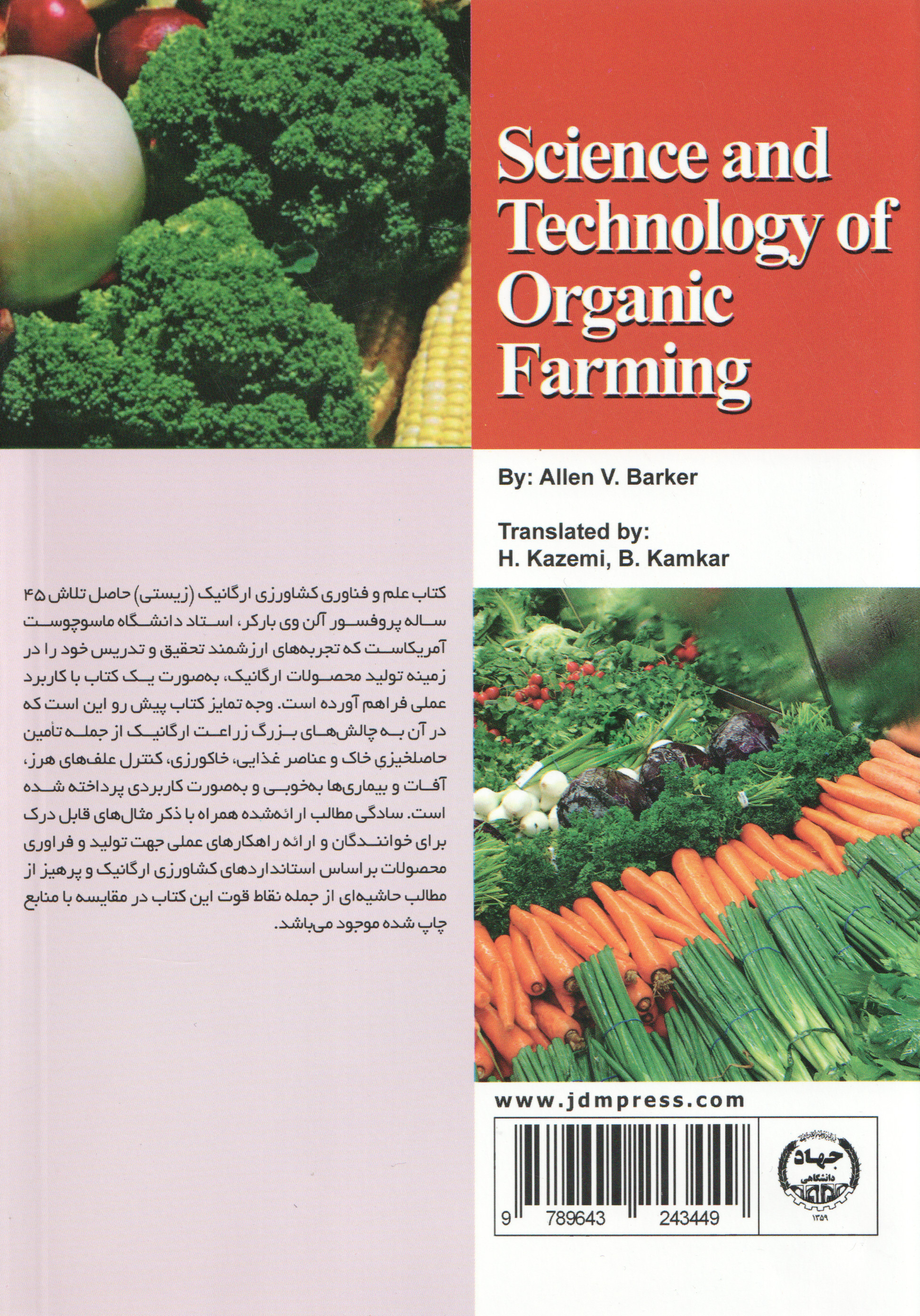 کتاب علم فناوری کشاورزی ارگانیک (زیستی) حاصل تلاش 45 ساله پروفسور آلن وی باکر، استاد دانشگاه ماسوچوست آمریکاست که تجربههای ارزشمند تحقیق و تدریس خود را در زمینه تولید محصولات ارگانیک، به صورت یک کتاب با کاربرد علمی فراهم آورده است.