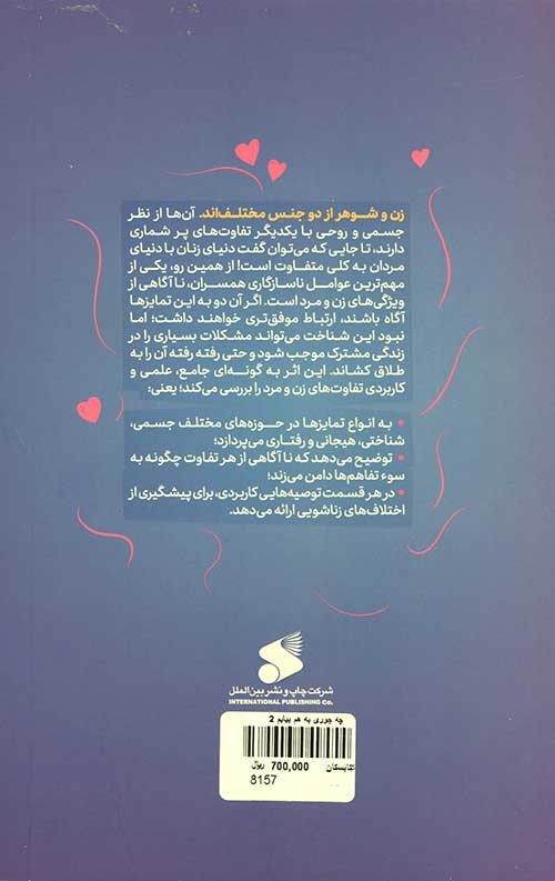 زن و شوهر از دو جنس مختلفاند، آنها از نظر جسمی و روحی با یکدیگر تفاوتهای بیشماری دارند، تا جایی که میتوان گفت دنیای زنان با دنیای مردان به کلی متفاوت است، از همین رو یکی از مهمترین عوامل ناسازگاری همسران، ناآگاهی از ویژگیهای زن و مرد است. اگر آن دو به این تمایزها آگاه باشند، ارتباط موفقتری خواهند داشت، اما نبود این شناخت میتواند مشکلات بسیاری را در زندگی مشترک موجب شود و حتی رفته رفته آن را به طلاق کشاند، این اثر به گونهای جامع، علمی و کاربردی تفاوتهای زن و مرد را بررسی میکنند؛ یعنی: به انواع تمایزها در حوزههای مختلف جسمی، شناختی، هیجانی و رفتاری میپردازد؛ توضیح میدهد که ناآگاهی از هر تفاوت چگونه به سوء تفاهمها دامن میزند؛ در هر قسمت توصیههایی کاربردی، برای پیشگیری از اختلافهای زناشویی ارائه میدهد.