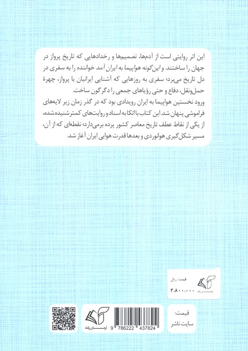 این اثر روایتی است از آدمها، تصمیمها و رخدادهایی که تاریخ پرواز در جهان را ساختند و این گونه هواپیما به ایران آمد خواننده را به سفری در دل تاریخ می برد؛ سفری به روزهایی که آشنایی ایرانیان با پرواز، چهره حمل و نقل، دفاع و حتی رویاهای جمعی را دگرگون ساخت. ورود نخستین هواپیما به ایران رویدادی بود که در گذر زمان زیر لایههای فراموشی پنهان شد. این کتاب با اتکا به اسناد و روایتهای کمتر شنیده شده، از یکی از نقاط عطف تاریخ معاصر کشور پرده برمیدارد؛ نقطهای که از آن، مسیر شکلگیری هوانوردی و بعدها قدرت هوایی ایران آغاز شد.