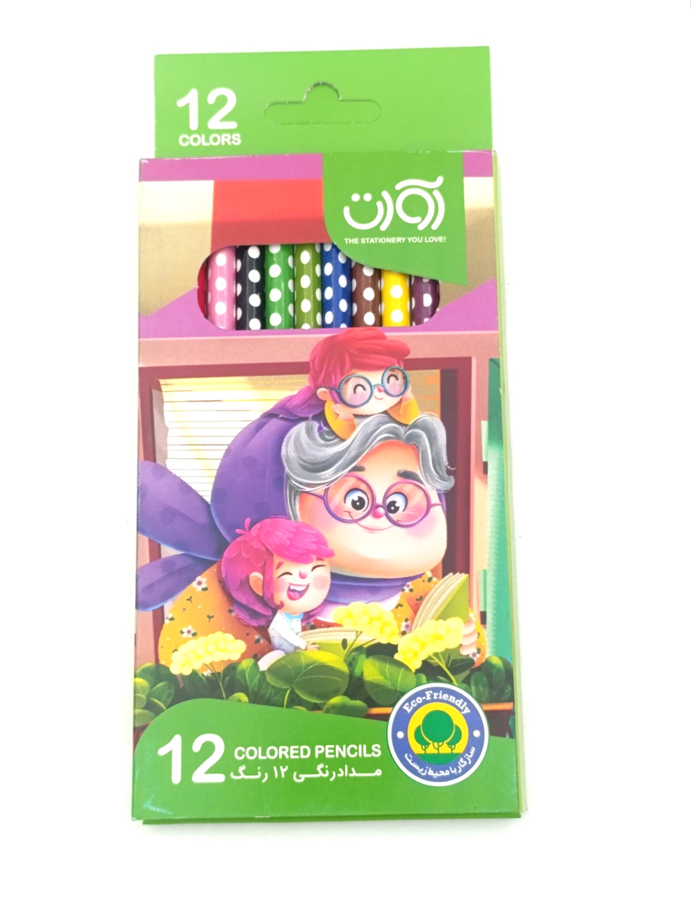 دسته بندی های مداد 12 رنگ جعبه مقوایی مدل 3916 (آوات) - سبز