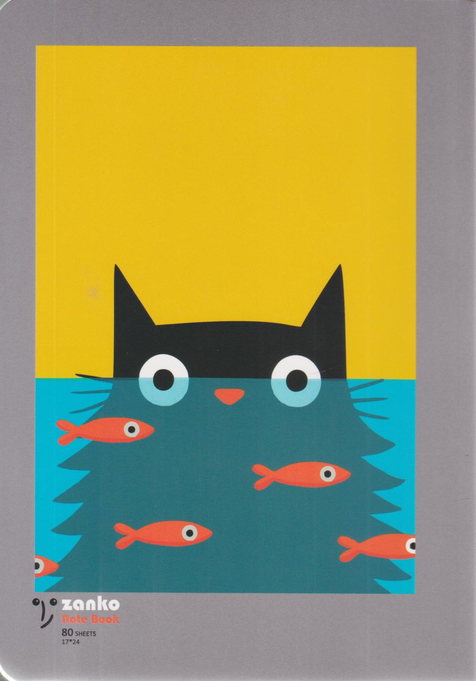 دفتر 80 تکخط ته چسب جلدگلاسه طرح فانتزی (زانکو) - گربه و ماهی
