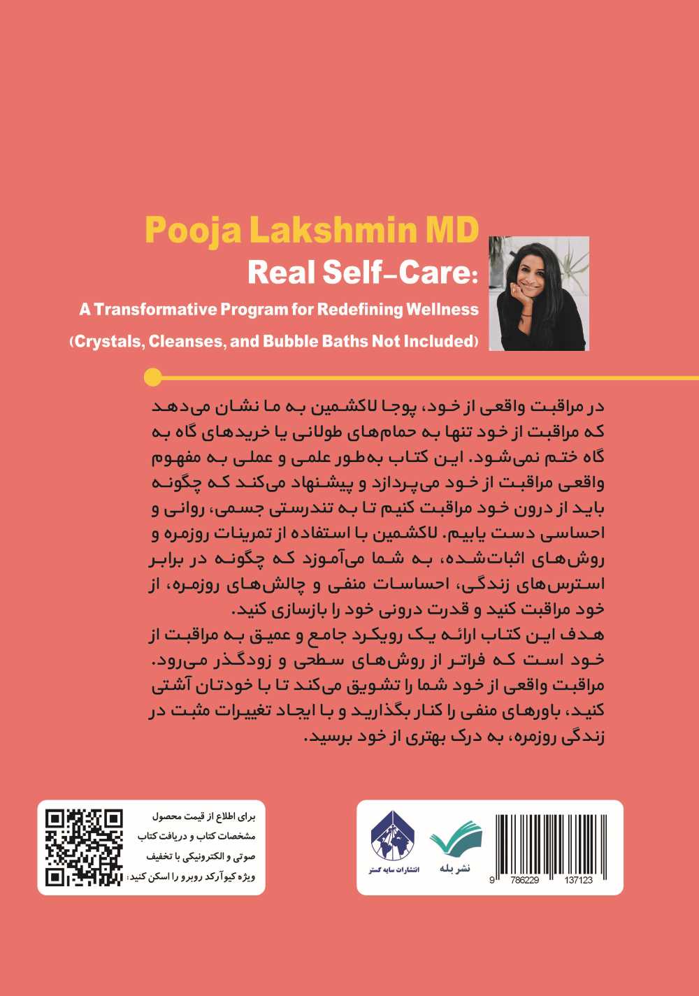 کتاب «مراقبت واقعی از خود: تمرینات قدرتمند برای تغذیه درونی و بیرونی خود» نوشتهی پوجا لاکشمین، به بررسی مفهوم عمیق مراقبت از خود پرداخته و نشان میدهد که این مراقبت تنها به کارهایی مانند حمامهای طولانی یا خریدهای گاه به گاه محدود نمیشود. لاکشمین با استفاده از تمرینات روزمره و روشهای علمی، به خوانندگان کمک میکند تا در برابر استرسهای زندگی، احساسات منفی و چالشهای روزمره، از خود مراقبت کنند و قدرت درونی خود را بازسازی کنند. این کتاب یک رویکرد جامع و عملی برای بهبود سلامت جسمی، روانی و احساسی ارائه میدهد که میتواند به زندگی هر فرد عمق و توازن بیشتری ببخشد. هدف اصلی این کتاب، ایجاد تغییرات مثبت در زندگی روزمره است که نه تنها به کاهش استرس و بهبود احساسات منفی کمک میکند، بلکه به خواننده یاد میدهد چگونه با خود آشتی کند، باورهای منفی را کنار بگذارد و به درک بهتری از خود برسد. لاکشمین بهطور عملی پیشنهاد میکند که چگونه میتوان از درون خود مراقبت کرد تا به تندرستی و بهزیستی واقعی دست یابیم، و این کار را از طریق تمرینات اثباتشده و شیوههای علمی انجام میدهد. کتاب «مراقبت واقعی از خود» مورد تحسین منتقدان قرار گرفته و بهعنوان یکی از پرفروشترینهای نیویورک تایمز شناخته شده است. منتقدان آن را یک «راهنمای ضروری برای کسانی که به دنبال گنجاندن مراقبت از خود به شیوهای عمیقتر و موثرتر در زندگیشان هستند» توصیف کردهاند. این کتاب بهویژه برای کسانی که میخواهند به بهزیستی واقعی دست یابند و بهطور موثر از خود مراقبت کنند، بسیار توصیه میشود.