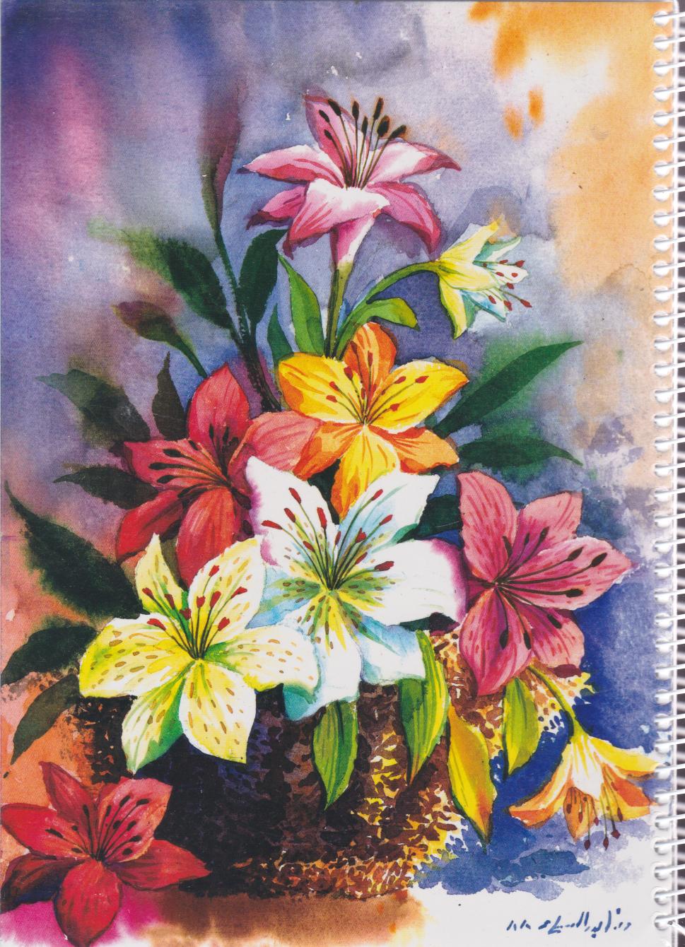 دفتر 80 برگ تکخط فنری جلدشده طرح کلاسیک (طرفه) - گل