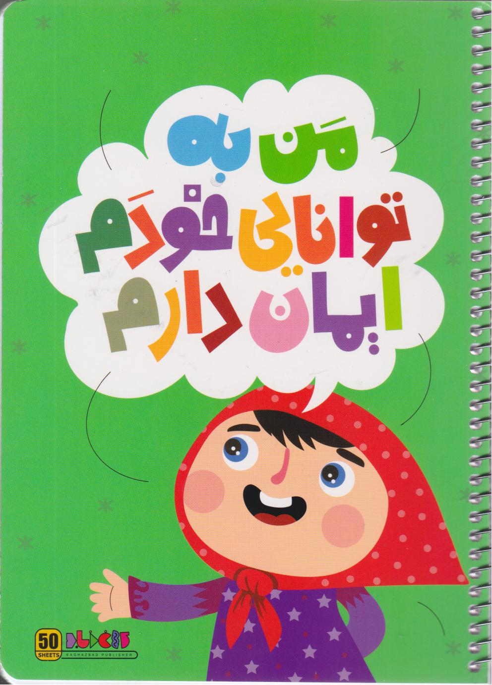 دفتر 50 برگ تکخط فنری جلد گلاسه طرح باورهای من (کاغذ باد) - سبز