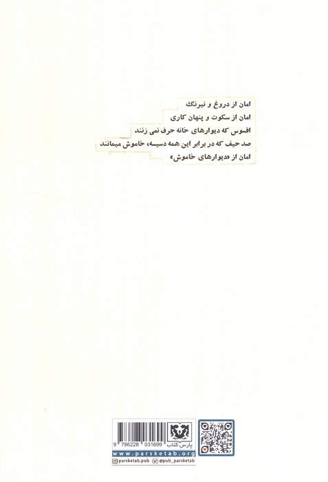 امان از دروغ و نیرنگ امان از سکوت و پنهان کاری افسوس که دیوارهای خانه حرف نمیزنند صد حیف که در برابر این همه دسیسه، خاموش میمانند امان از دیوارهای خاموش