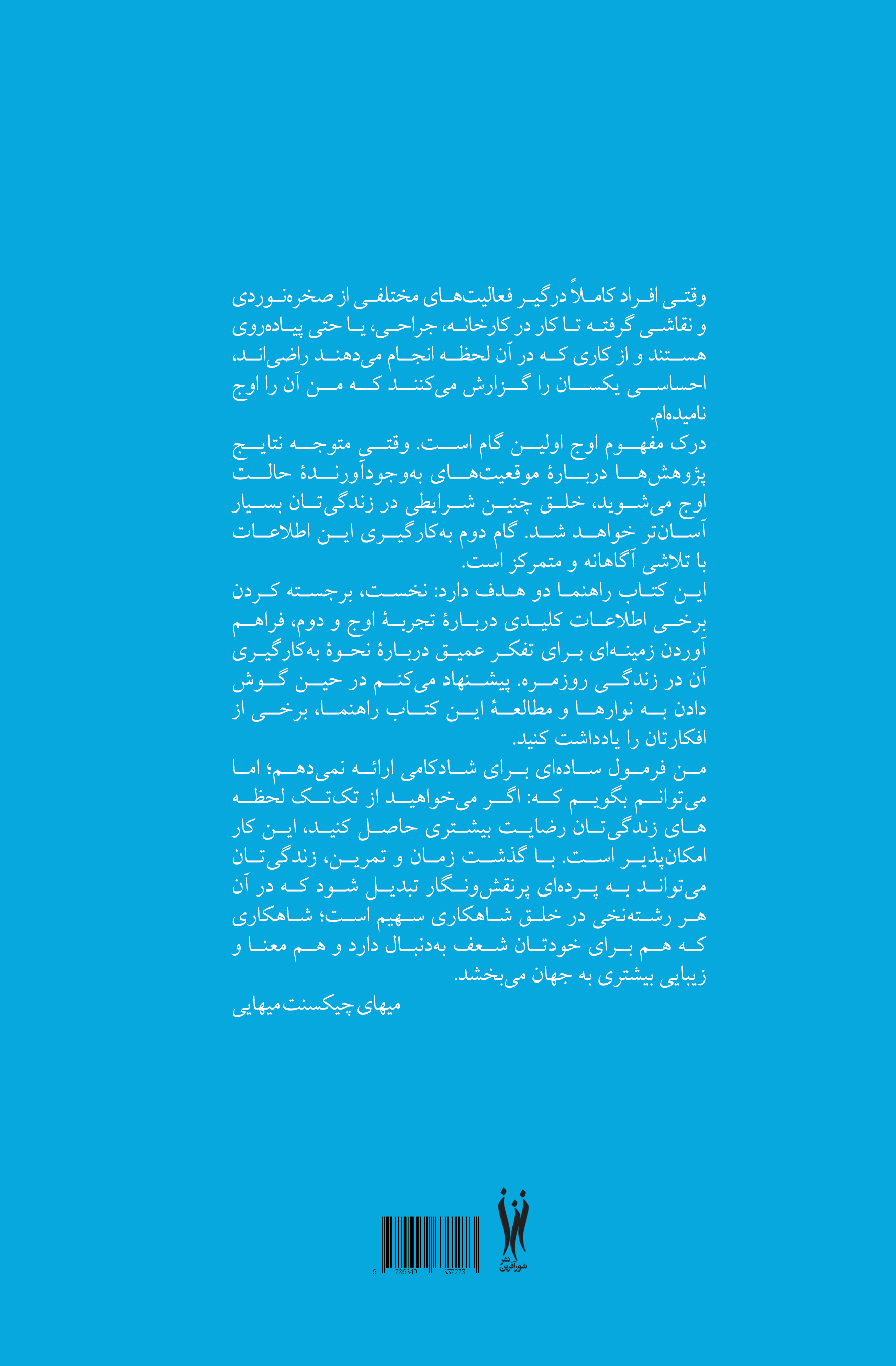 وقتی افراد کاملا درگیر فعالیتهای مختلفی از صخرهنوردی و نقاشی گرفته تا کار در کارخانه، جراحی، یا حتی پیادهروی هستند و از کاری که در آن لحظه انجام میدهند راضیاند، احساسی یکسان را گزارش میکنند که من آن را اوج نامیدهام.