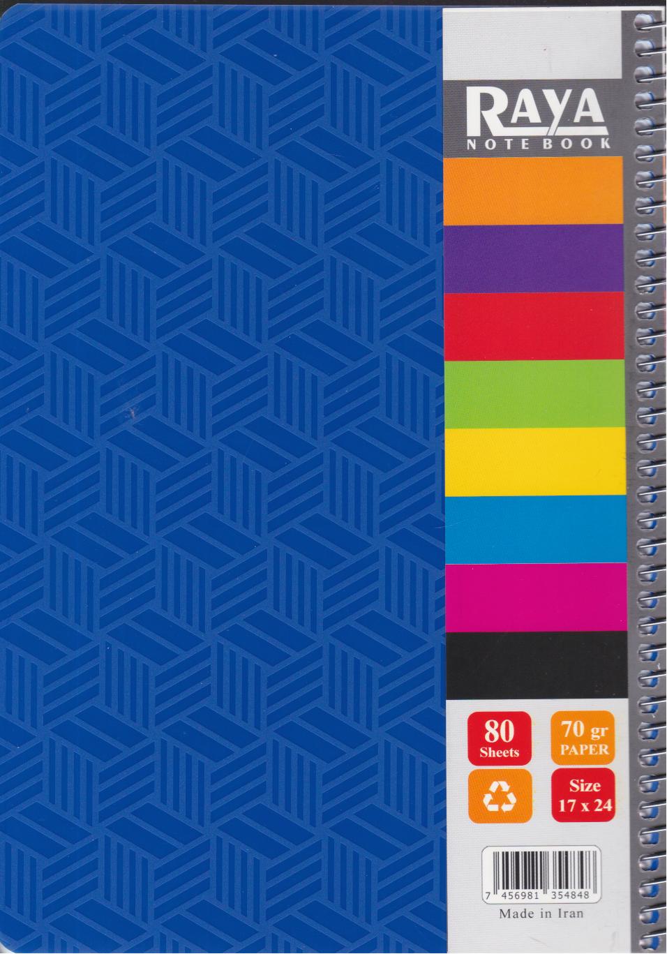 دفتر 80 برگ فنری خطدار طلقی طرحدار (رایا) - آبی