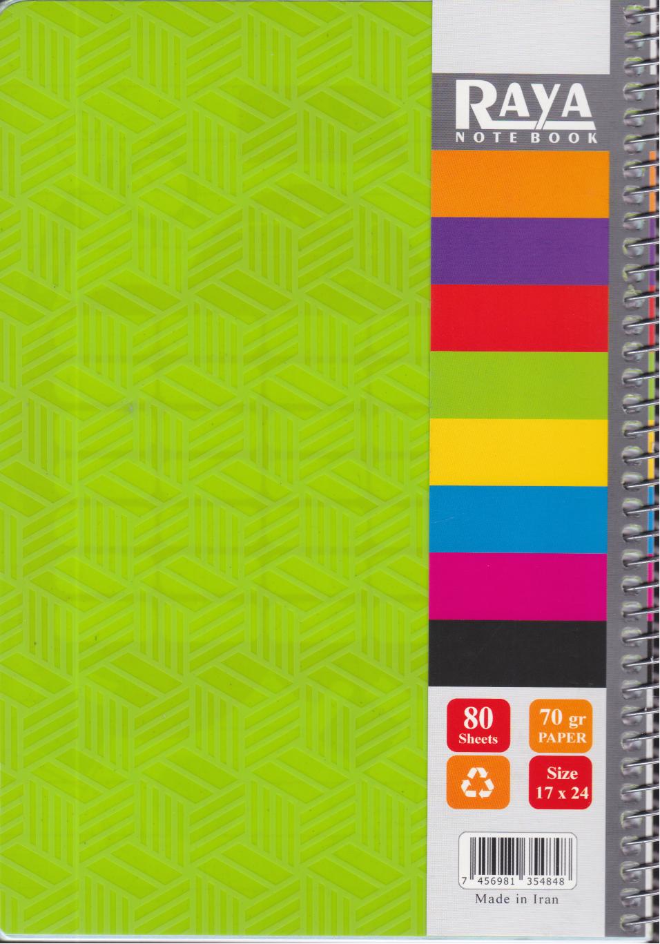دفتر 80 برگ فنری خطدار طلقی طرحدار (رایا) - سبز