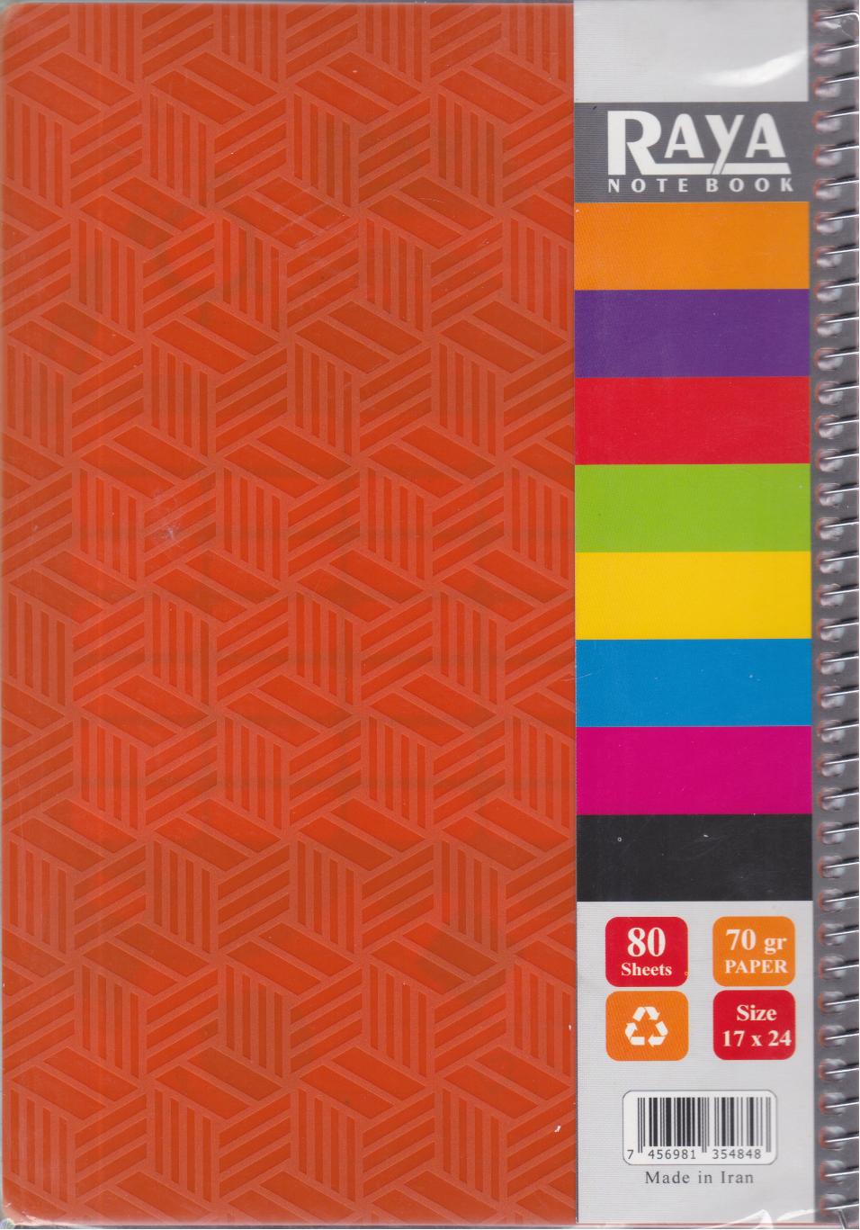 دفتر 80 برگ فنری خطدار طلقی طرحدار (رایا) - نارنجی