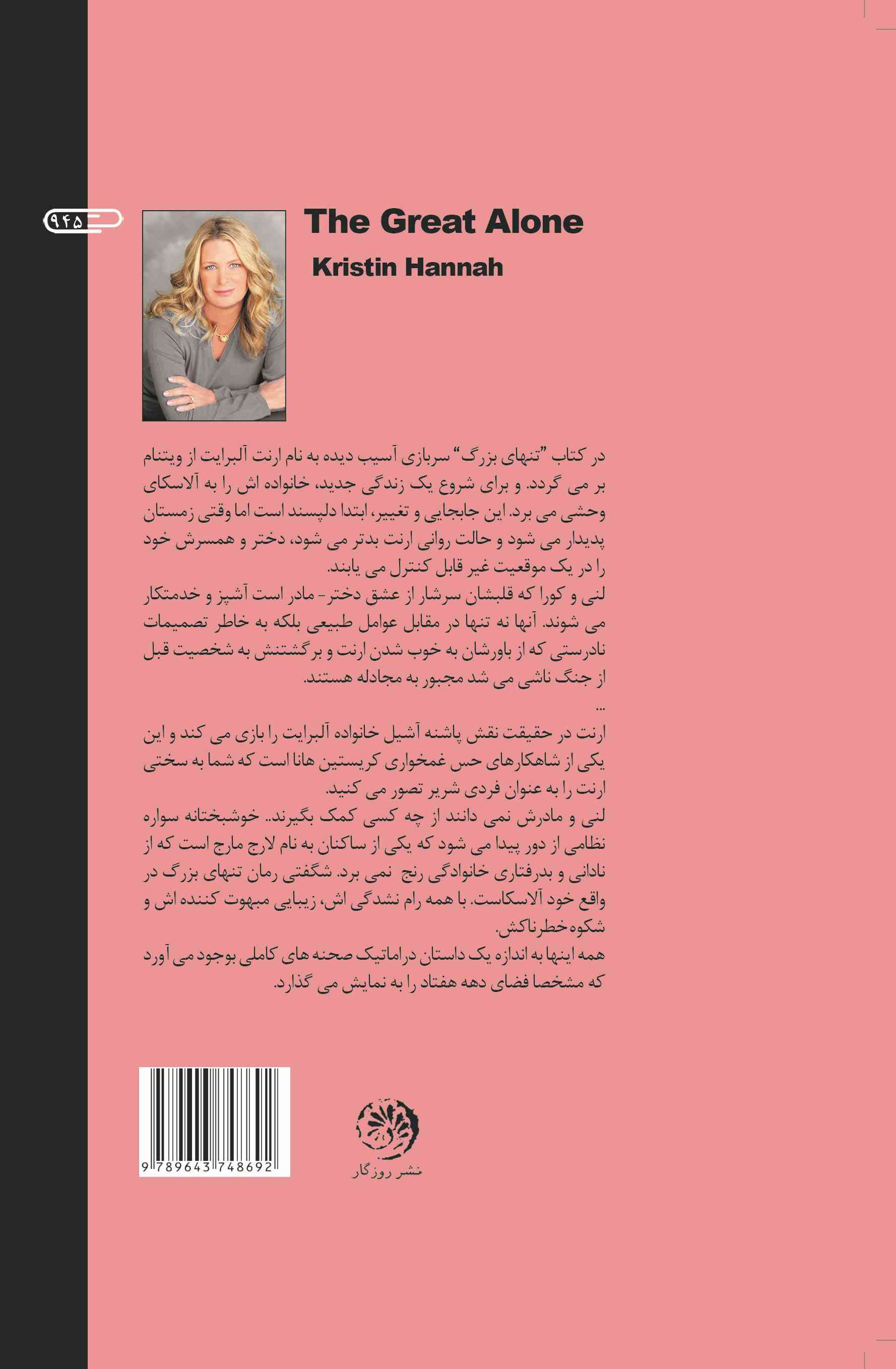 کتاب قشنگی بود. راجع به آلاسکا، خشونت خانگی، عشق و مبارزه و پشیمونی. من ترجمه نشر تندیس رو گرفتم که به شدت خامدستانه بود و به نظرم خوب نبود. مفهوم اصلی ضربه نخورده بود بیشتر اصطلاحات و کنایهها درست ترجمه نشده بودن و ترجمه کلمه به کلمه بودند.