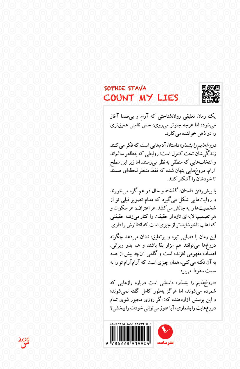 اسلون کاراوی یک دروغگوست. البته بیشتر دروغهایش بیضررند؛ دروغهایی کوچک برای اینکه زندگی بهقول خودش غمانگیز و بیاهمیتش را کمی هیجانانگیزتر کند. تا اینکه یک بعدازظهر در پارک، دختربچهای را میبیند که با گریه ایستاده است. اسلون نمیتواند جلوی خودش را بگیرد-به پدر (بسیار جذاب) دختر میگوید پرستار است و به او کمک میکند نیش زنبور را از پای دختر بیرون بیاورد. همین دروغ و این برخورد اتفاقی باعث میشود اسلون به عنوان پرستار بچه خانواده ثروتمند و مرفه لاکهارت استخدام شود: جی و وایولت لاکهارت؛ زوجی بینقص در نیویورک با خانهای مجلل، دختری در مدرسه خصوصی و تعطیلات تابستانی در بلاک آیلند. اما شاید اسلون تنها کسی نباشد که دروغ میگوید، و پشت این تصویر بیعیبونقص، حقیقتی بسیار خطرناکتر پنهان شده باشد. گفتن بیش از این، لذت خواندن یکی از هیجانانگیزترین، پرپیچوخمترین و هوشمندانهترین رمانهای معمایی سالهای اخیر را از بین میبرد. واقعیت این است که دروغها روی هم انباشته میشوند، حقیقتی تازه برای خود میسازند و جهانی کجومعوج و زندانگونه خلق میکنند. در رمان «دروغهایم را بشمار»، سوفی استاوا تریلری نفسگیر و جذاب خلق کرده است درباره رازهایی که پنهان میکنیم و همینطور خطرات هولناکی که پشت هر دروغی پنهان کردهایم و اینهمه برای حفظش تلاش میکنیم