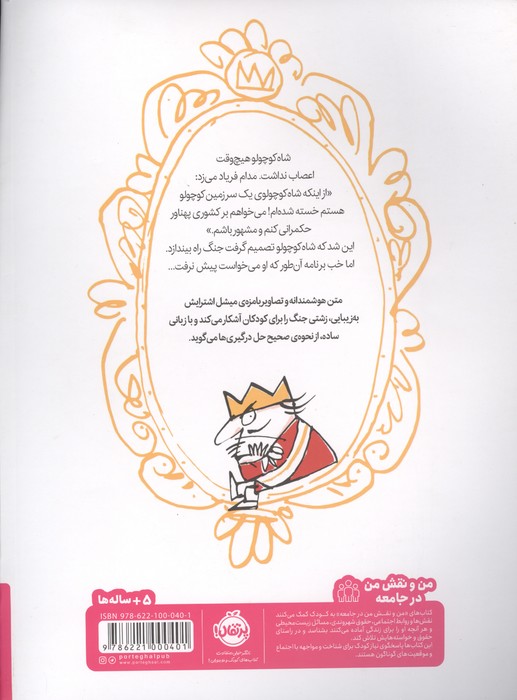 شاهکوچولوی بیاعصاب داستان پادشاه بداخلاقی است که همیشه غر میزند و از کوچک بودن سرزمینش ناراضی است. او دلش میخواهد بزرگتر و مهمتر باشد و فکر میکند اگر جنگ راه بیندازد، همهچیز درست میشود. اما وقتی جنگ شروع میشود، اتفاقات عجیبی میافتد که شاهکوچولو اصلا انتظارش را ندارد. همین اتفاقها کمک میکنند او و خوانندههای کوچک کتاب بفهمند که جنگ و زورگویی راهحل خوبی نیست و گاهی مشکل از نگاه خود ما به دنیا شروع میشود. این کتاب با داستانی ساده و شیرین و تصویرهایی دوستداشتنی، کودکان را با مفاهیم مهمی مثل همدلی، مسئولیتپذیری و انتخاب راههای بهتر بهجای خشونت آشنا میکند. متن هوشمندانهی کتاب و تصویرسازیهایبامزهی میشل استرایش شاه کوچولوی بیاعصاب را به یک کتاب تصویری عالی برای بلندخوانی همراه با کودکان تبدیل کرده است. این داستان جذاب و تفکربرانگیز، با نگاهی شوخطبعانه پوچی و حماقت جنگ را به تصویر میکشد.