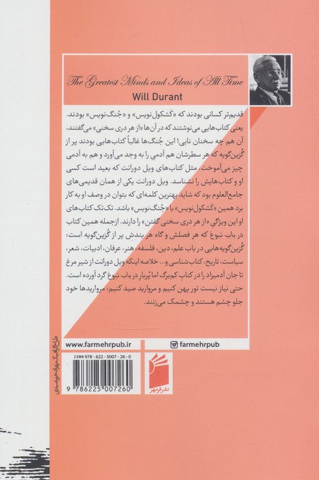 ویلیام جیمز دورانت، فیلسوف، تاریخنگار و نویسندهٔ آمریکایی بود.مهم ترین اثر او تاریخ تمدن، مجموعه کتابی ۱۱ جلدی است که با همکاری آریل دورانت، همسرش نوشته است. وی در این کتاب توانسته است با استفاده از آثار مورخان دیگر (از هرودوت تا آرنولد توین بی)، که از ابتدای تاریخ مکتوب بشر تا کنون زیسته اند، مکتب نوینی از تاریخ نگاری را به وجود آورد.برخلاف دیگر تاریخ نگاران، که تنها تمرکزشان بر روی وقایع تاریخی و سیر تمدن بشری بود، وی در اثر خود به عوامل تمدن ساز در طول تاریخ نیز توجه می کند. در این باره نقل قولی دارد که چنین است: «تمدن رودی است با دو ساحل»∗. این نقل قول به طور ضمنی به این مسئله اشاره دارد که تاریخ نگاران اغلب نهایت توجه و دقت خود را صرف رودخانهٔ در جریان تاریخ نموده اند که معمولا پرآشوب و پرهیاهوست و اجازهٔ برداشت ها و تفاسیر صحیح را نمی دهد. در مقابل، او دیدگاه دیگری را مطرح می کند که در آن حواشی تاریخ و تمدن (ساحل ها) می توانند به اندازهٔ خود متن تاریخ مهم باشند. به نظر او، همهٔ مردمانی که در طول تاریخ خانه و مجسمه ساختند و شعر سراییده اند هم در شکل گیری تمدن نقش داشتند. ویل دورانت در کتاب درس هایی از تاریخ، که در سال های آخر زندگی خود نوشت، می گوید که تاریخ ملت ها را باید با توجه به پدیده های علمی جدید نوشت.