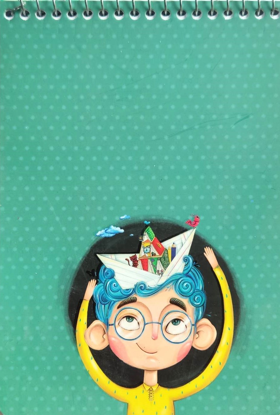 دفتر 80 برگ وزیری سیمی مجلد (خط آبی) سری پسر دلفینی