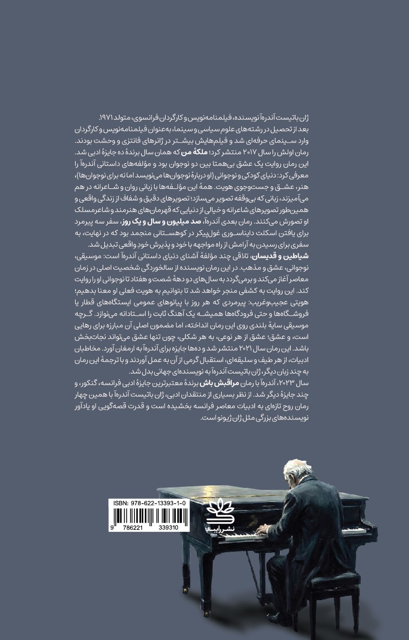 شیاطین و قدیسان، تلاقی چند مولفهٔ آشنای دنیای داستانی آندرهآ است: موسیقی، نوجوانی، عشق و مذهب. در این رمان نویسنده از سالخوردگی شخصیت اصلی در زمان معاصر آغاز میکند و برمیگردد به سالهای دو دههٔ شصت و هفتاد تا نوجوانی او را روایت کند. این روایت به کشفی منجر خواهد شد تا بتوانیم به هویت فعلی او معنا بدهیم؛ هویتی عجیبوغریب: پیرمردی که هر روز با پیانوهای عمومی ایستگاههای قطار یا فروشگاهها و حتی فرودگاهها همیشه یک آهنگ ثابت را استادانه مینوازد. گرچه موسیقی سایهٔ بلندی روی این رمان انداخته، اما مضمون اصلی آن مبارزه برای رهایی است، و عشق؛ عشق از هر نوعی، به هر شکلی، چون تنها عشق میتواند نجاتبخش باشد. این رمان سال ۲۰۲۱ منتشر شد و دهها جایزه برای آندرهآ به ارمغان آورد. مخاطبان ادبیات، از هر طیف و سلیقهای، استقبال گرمی از آن به عمل آوردند و با ترجمهٔ این رمان به چند زبان دیگر، ژان باتیست آندرهآ به نویسندهای جهانی بدل شد.