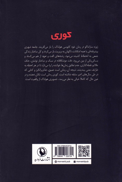 خب میتونم بگم از بهترین رمانهایی که خوندم بوده تا الان.. جماعتی که بصورت مسری کور میشن و از همون اولکار دچار چنددستگی.. و قطعا ناامیدی بالاترین آفت برگشت به سلامت خواهد بود.. داستان، روایتگر تقابل مختلفِ افراد مختلف با بلاها و فتنهها و ظلمهاست و لزوم وجود رهبری بینا رو یادآوری میکنه.. کشش نسبتاً خوب داستان، طولانی شدن روایت رو پوشش میده.. نویسنده از همون شروع داستان مخاطب رو همراه میکنه بحدی که در بعضی صحنهها واقعا خواننده متاثر میشه.. مضامینی جانبی مثل امید و پرهیز از قضاوت، در اثر، پررنگ هستن.. ترجمه مینو مشیری در درجهاول و بعد آقای غبرایی رو پیشنهاد میکنم