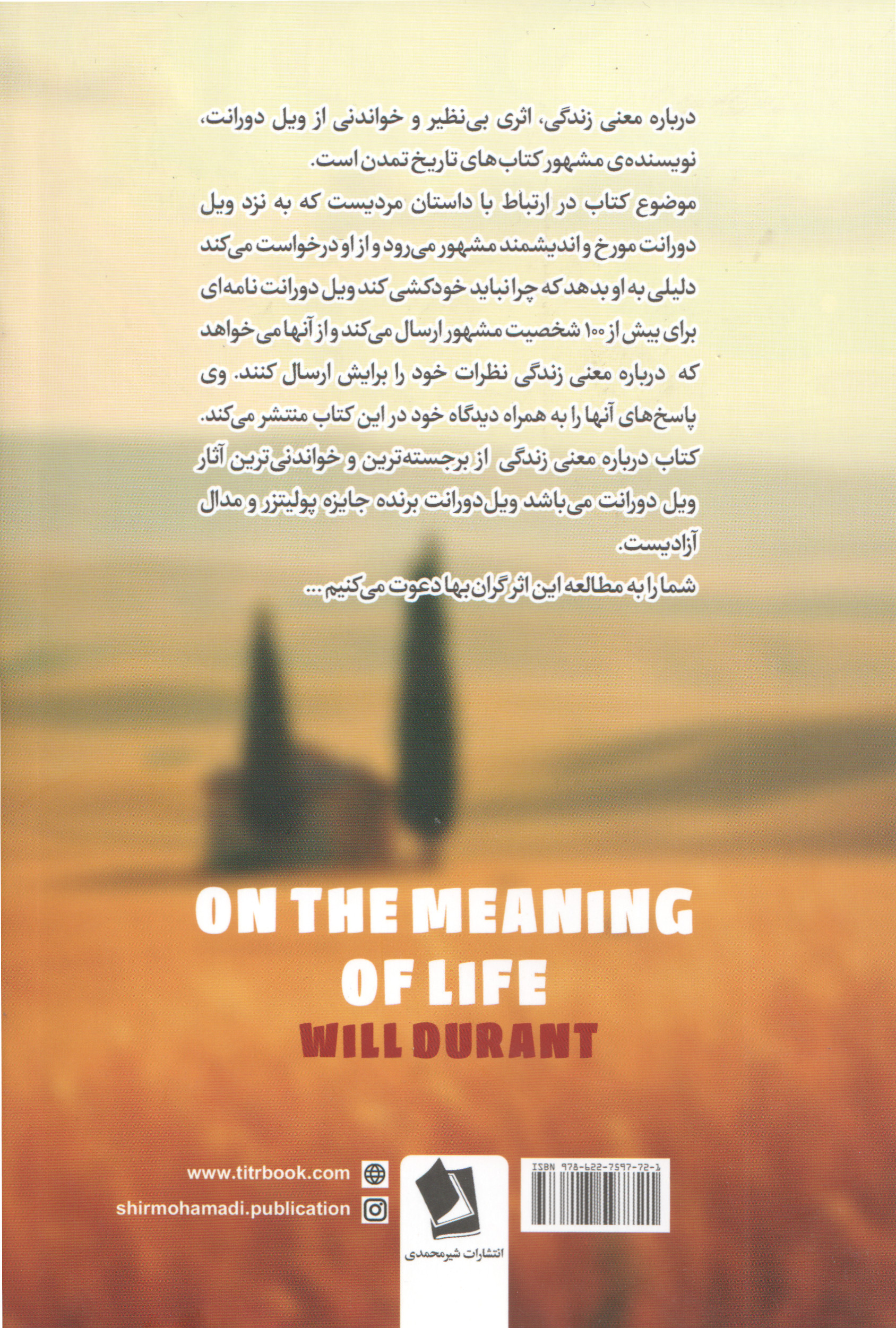 به نظرم کتاب درباره معنی زندگی از جناب دورانت کتاب خوب و معمولی بود و نمیشه گفت یه کتاب فوق العاده و غنی هستش (به جز چند صفحه آخر کتاب که جواب نامه ای از یک زندانی حبس ابد هستش). به طور خلاصه جناب دورانت یک نامه ای رو با پرسشی در مورد معنا و مفهوم زندگی برای ادمهای معروف عصر خودش ارسال میکنه که برخی از اون آدمها جواب دورانت رو میدن و ایشون هم بعضی از پاسخهای دریافتی رو گرداوری کرده و در قالب یک کتاب برای مخاطبینش ارایه کرده. هر کسی در پاسخ به پرسش نامه دورانت، نظر و نگاه شخصیش رو به زندگی بیان کرده که به نظرم پاسخهای انچنان متفاوت و عالی ای مطرح نشده ولی خوب در هر صورت خوندنشون خالی از لطف نیست. اما در اخر کتاب همنطور که گفتم پاسخی از یک زندانی حبس ابد اورده شده که ارزش کل کتاب به نظرم مربوط به همین قسمت میشه. به نظرم اگر به جای کل کتاب فقط همین نامه زندانی رو بخونید هم کافی هستش و پیامش رو به مخاطب میرسونه. بنده چاپ بیست و سوم نشر عطر کاج با ترجمه خانوم ریحانه عسگری رو خوندم که متاسفانه چندین غلط املایی در کتاب وجود داشت و بعضی جاها هم (اگر متن اصلی درست نوشته شده) به نظرم خیلی خوب ترجمه نشده بود. ولی در مجموع ترجمه قابل قبول بود که البته جای بهتر شدن هم داره.
