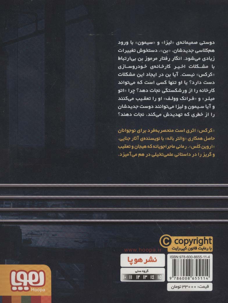 کتاب «کرکس» نوشتهٔ والتر باله و اروین کلس، داستانی هیجانانگیز، رازآلود و علمیتخیلی برای نوجوانان بالای ۱۱ سال است که در آن مفاهیمی چون دوستی، اعتماد و اخلاق در برابر قدرت و طمع به چالش کشیده میشود. داستان حول دو دوست صمیمی، لیزا و سایمون، میچرخد؛ پدران آنها در کارخانه معروف خودروسازی کار میکنند. همهچیز عادی پیش میرود تا زمانی که یک نمونه اولیه از کارخانه بهطرز مشکوکی ناپدید میشود و در همین حین، دانشآموزی جدید و مرموز به نام بن وارد مدرسه آنها میشود. بن باهوش و خاص است؛ او در تعمیر ربات سایمون کمک بزرگی میکند، اما خیلی زود مشخص میشود که او تنها یک نوجوان معمولی نیست. بن در واقع یک روبات انساننماست، ساختهشده توسط رئیس کارخانه؛ مردی که حالا در تلاش است او را دوباره تحت کنترل درآورد تا از او برای نجات کارخانه استفاده کند، بیتوجه به پیامدهای اخلاقی و انسانی این کار. لیزا و سایمون درمییابند که باید از بن محافظت کنند؛ تصمیمی که آنها را وارد ماجراهایی پرمخاطره و سرشار از تعلیق میکند. در طول داستان، آنها با چالشهایی روبهرو میشوند که نهتنها توانایی فکریشان، بلکه دوستیشان را هم محک میزند. این کتاب ترکیبی جذاب از اکشن، فناوری، و دوستی در قالب داستانی پرکشش است که توسط بازیگر و هنرمند خلاق، والتر بائل، و نویسندهٔ داستانهای مهیج نوجوانان، اروین کلس، خلق شده است. این اثر، خواننده را با خود به دنیایی میبرد که در آن مرز میان انسان و ماشین، و درست و غلط، دیگر چندان واضح نیست.