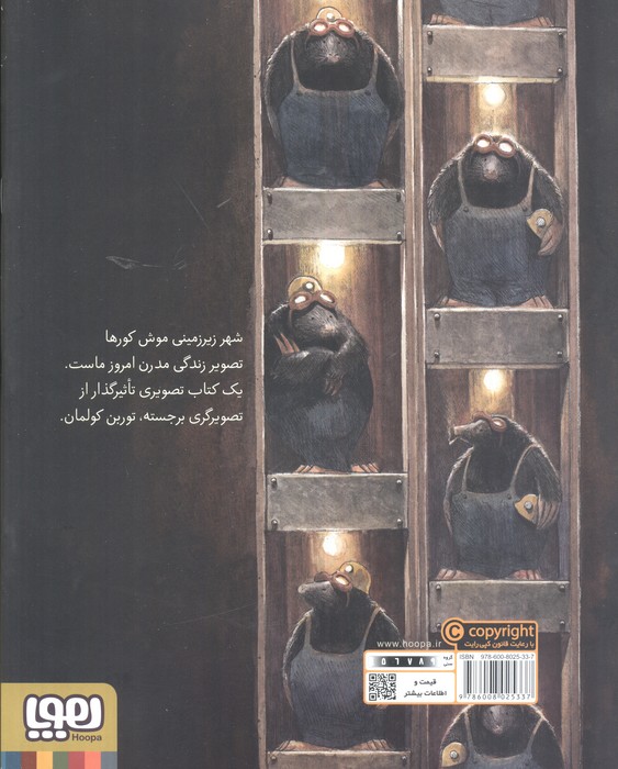 توربن کولمان متولد 1982، اهل آلمان و دارای مدرک تصویرگری و طراحی ارتباطات از دانشگاه HAW هامبورگ در آلمان است. شیفتگی توربن به هواپیماهای کوچک، ماشین های عجیب و قطارهای بخار راه آن ها را به طراحی هایش باز کرد. کولمان جوایز بسیاری برده که یکی از آن ها جایزه ی جزیره ی طلایی در مسابقه ی نامی ۲۰۱۵ است. توربن کار با قلم و آب رنگ را ترجیح می دهد، اما با اکریلیک، رنگ روغن و برنامه های دیجیتال هم کار می کند.شهر موش کورها دومین کتاب تصویری است که از کولمان که در نشر هوپا منتشر شده است. کتاب دیگر او در نشر هوپا لیندبرگ: سرگذشت ماجراجویانه ی یک موش خلبان است. کتابی که در مدت کوتاهی به لیست کتاب های پرفروش دنیا راه پیدا کرد و ماهیت نوآورانه ی خود را مدیون علاقه ی بی اندازه ی کولمان به اختراعات عجیب و غریب است.