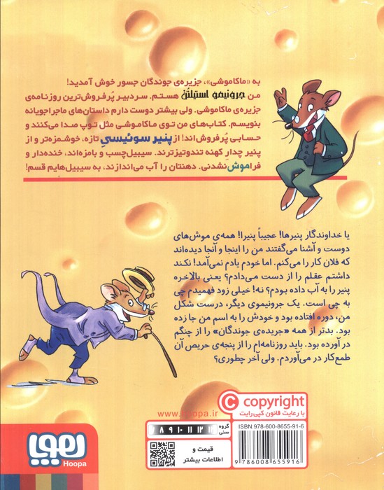 یا خداوندگار پنیرها! عجیبا غریبا! همه ی موش های دوست و آشنا می گفتند من را اینجا و آنجا دیده اند که فلان کار را می کنم. اما خودم یادم نمی آمد! نکند داشتم عقلم را از دست می دادم؟ یعنی بالاخره پنیر را به آب داده بودم؟ نه! خیلی زود فهمیدم چی به چی است. یک جرونیموی دیگر، درست شکل من، دوره افتاده بود و خودش را جای من زده بود. بدتر از همه «جریده ی جوندگان» را از چنگم در آورده بود. باید روزنامه ام را از پنجه ی حریص آن طمع کار در می آوردم. ولی آخر چطوری؟