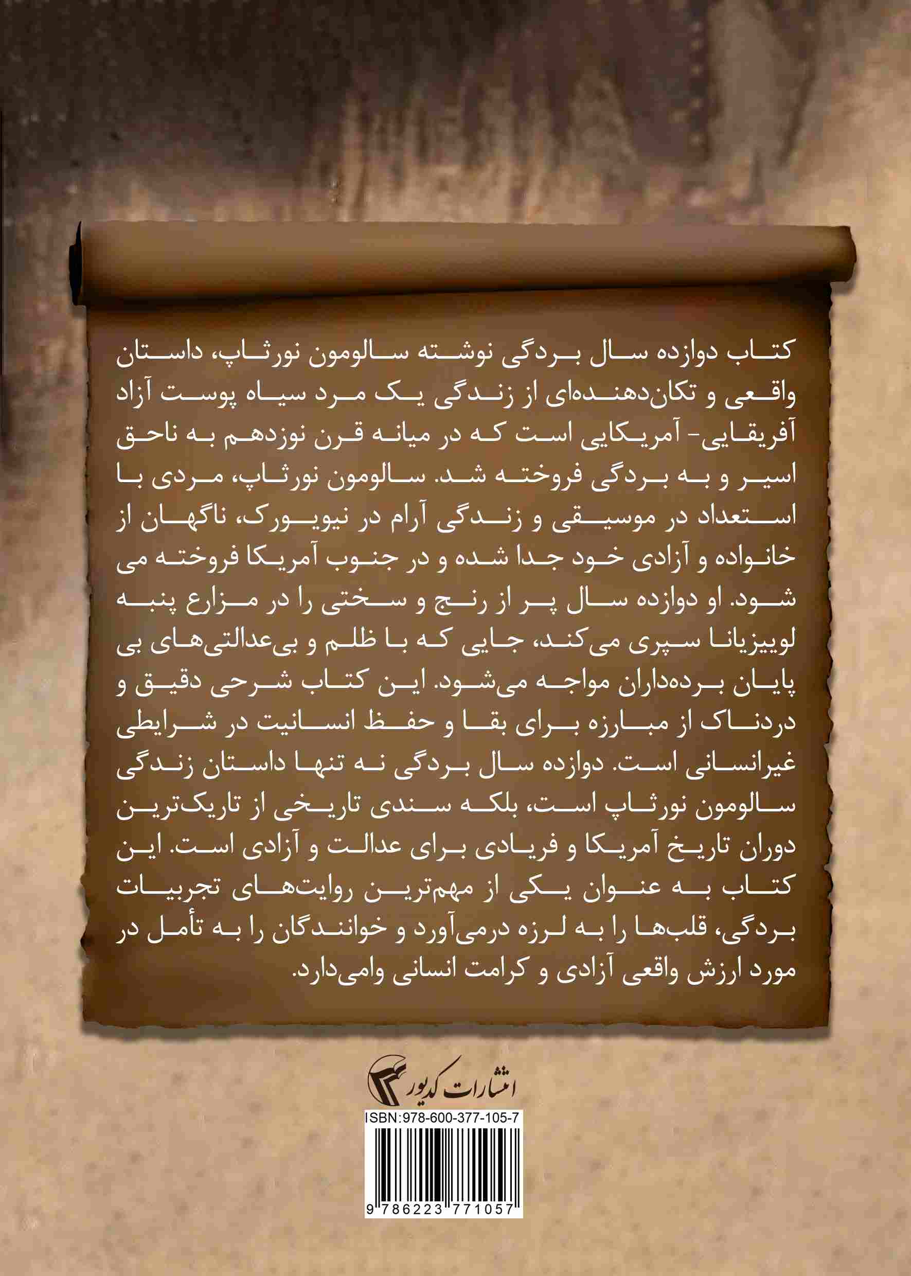 دو تاجر برده با بیهوش کردن وی، او را به عنوان برده میفروشند. او را با کشتی به نیواورلئان برده جایی که یک مزرعهدار او را خریداری میکند.در طول این مدت وی را چندین بار دیگر نیز خرید و فروش میکنند. او همچنین چند بار تلاش برای فرار کرد. در نهایت با برقراری ارتباط با دوستان و خانواده اش موفق به کسب مجدد آزادیاش میشود.