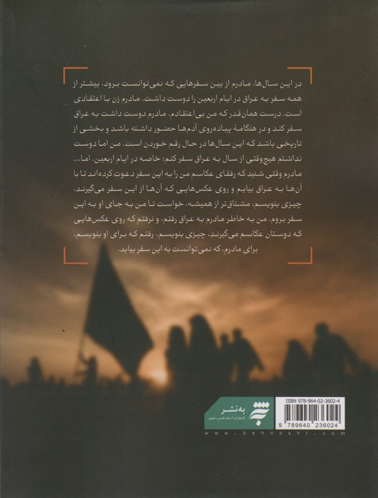 در این سالها ،مادرم از بین سفرهایی که نمی توانست برود،بیشتر از همه به عراق در ایام اربعین را دوست داشت.مادرم زن با اعتقادی است .درست همانقدر که من بی اعتقادم .مادرم دوست داشت به عراق سفر کند و در هنگامه ی پیاده روی آدم ها حضور داشته باشد و بخشی از تاریخی باشد که این سال ها در حال رقم خوردن است .من اما دوست نداشتم هیچ وقت از سال به عراق سفر کنم ؛خاصه در ایام اربعین.اما…مادرم وقتی شنید که رفقای عکاسم من را به این سفر دعوت کرده اند تا با آن ها به عراق بیایم و روی عکس هایی که آن ها از این سفر می گیرند ،چیزی بنویسم،مشتاق تر از همیشه خواست تامن به جای او به این سفر بروم.من به خاطر مادرم به عراق رفتم،و نرفتم که روی عکس هایی که دوستان عکاسم می گیرند،چیزی بنویسم.رفتم که برای او بنویسم.برای مادرم که نمی توانست به این سفر بیاید.