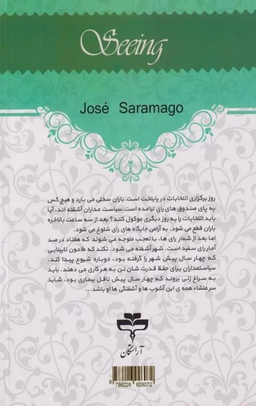 سلام و عرض ادب واقعا این کتاب خیلی قشنگ نوشته شده، رمان بینایی در واقع ادامه رمان کوری هست پیشنهاد میکنم اول کتاب کوری بخونید و بعد برید سراغ بینایی خیلی خیلی لذت خواهید برد توی خرید و خوندنش شک نکنید