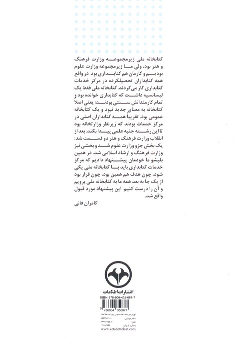 کامران فانی از جمله شخصیت های فرهنگی است که عمر خود را سال ها به پای کتاب گذاشته است. او نه تنها کتاب شناسی حرفه ای است، بلکه مترجم و مولف پرکاری نیز هست. کارنامه او مملو از آثاری است که تألیف و ترجمه کرده است. او از جمله کسانی است که کتابداری مدرن را در ایران ترویج کرد و کتابداری که اینک جزء یکی از تخصص های مهم در حوزه فرهنگ محسوب می شود، از جمله تلاشهای اوست. فانی به واسطه تلاشهای گسترده ای که در حوزه کتاب داشته، در تألیف و تدوین و راه اندازی دانشنامه های متعددی سهیم بوده است.
