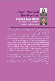 نمادهای رهبری و توسعۀ جهانی جان‌ سی. مکسول و راب هاسکینز نقشۀ راهی الهام‌بخش و عملی را در اختیار شما قرار می‌دهد که برای شروع تغییر در جامعۀ خود و فراتر از آن، به این نمادها نیازمندید. بسیاری از ما، احساس می‌کنیم دنیایی که در آن زندگی می‌کنیم شکست خورده است؛ اما تغییر آسـان‌تر از آن است که فکرش را می‌کنیم‌. جان سی. مکسول و راب هاسکینز در جهان خود را تغییر دهید به شما می آموزند که چگونه اهداف خود را شناسایی کنید؛ ارزش‌هایی را که تفاوت ایجاد می‌کنند زنده کنید؛ کاتالیزور تغییر شوید؛ به گروهی مناسب بپیوندید یا یکی از گروه‌های مناسب خود را جذب کنید؛ برای به وجود آوردن تغییر، با دیگران همکاری کنید؛ تأثیر خود را بر جهان بسنجید و به پیشرفت خود ادامه دهید.