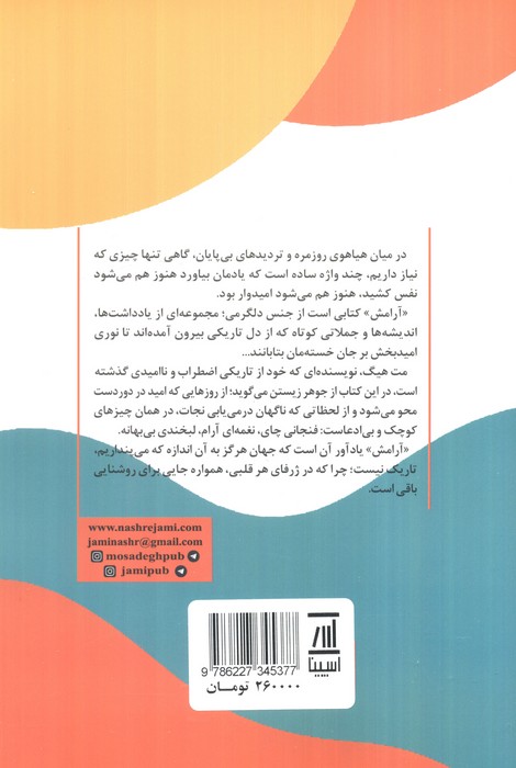 کتابی که توان ادامه دادن زندگی رو بهتون میبخشه اگه دچاراسترس شدین اگه ناامیددشدین اگه رو مود خوبی نبودین حتی اگه حالتون خوب بود و خواستین حال خوبتون مداوم باشه این کتاب رو بخونین تیکه هایی که هرکدوم از یک تجربه نشأت گرفته و داستان هایی که خوندنش خالی از لطف نیست حتی روشی که یک روانشناس برای فهمیدن اینکه دلیل خواسته ام نشأت گرفته ازچیه یادم داد؛ مت هیگ توی این کتاب آورده بود از نشر میلکان گرفتم و خوندم ترجمه عالی ای داشت و کلا برای کتابهای روانشناسی میلکان ناشرخوبیه و توصیه اش میکنم ❤️دلتون خوش