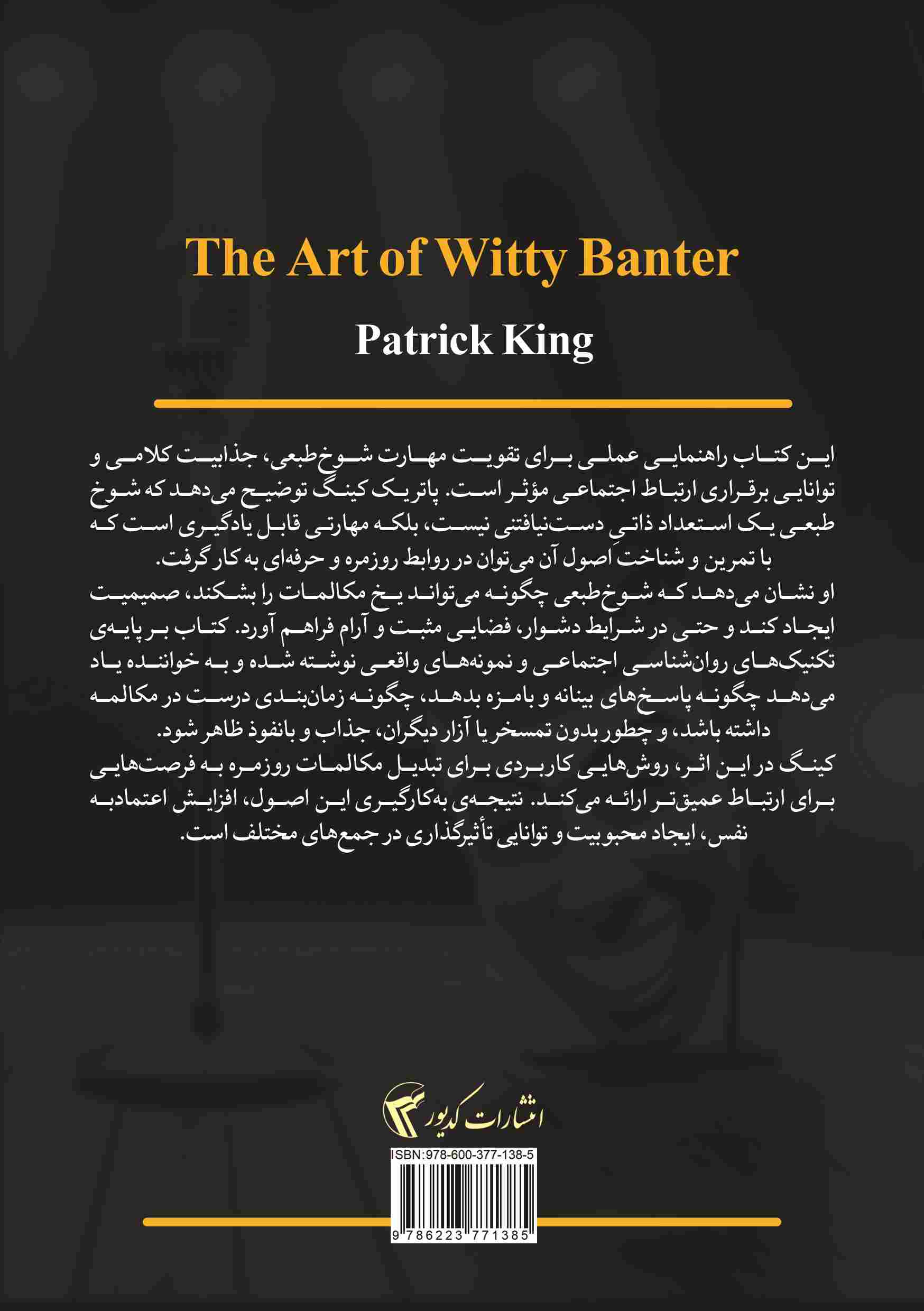 در ضمن اینکه روی کتاب زده در گفتگو کم نیارید منظور اینه که وقتی کسی حالا کنایه متلک برای خودشیرینی خودش به شما میزنه مخصوصا در جمع فوری جبهه نگیرید و عصبانی بشید یا سکوت کنید ناراحت شید شوخی شوخی شماهم به صورت طنز البته مودبانه و با خونسردی جواب بدید .. البته خیلی نکات جالبی داره که فکر میکنم برای همه ما این کتاب خالی از لطف نیست