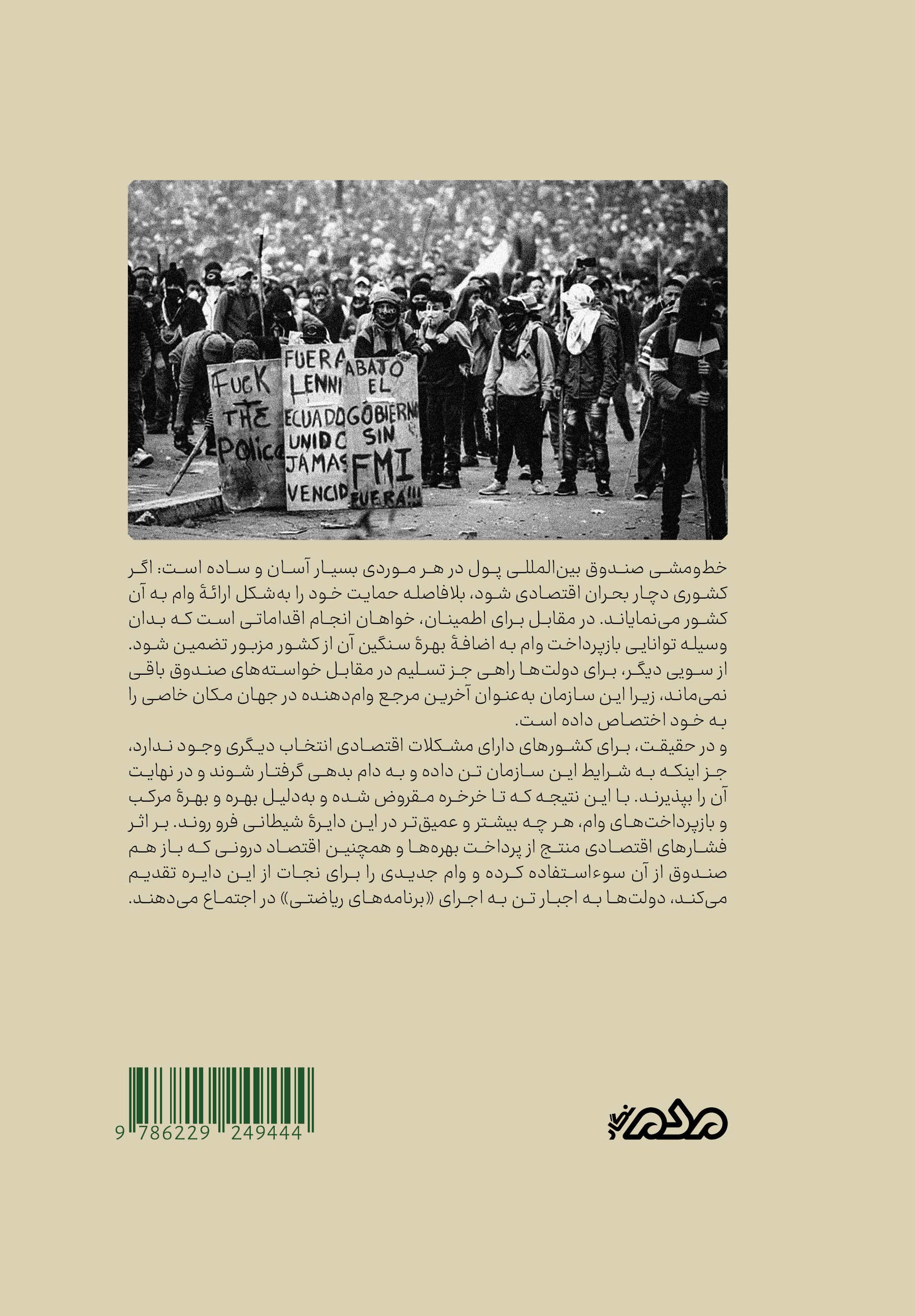 هیچ موسسه مالی در 50 سال گذشته به اندازه صندوق بین المللی پول در زندگی بسیاری از مردم روی زمین دخالت نکرده است. این سازمان جهانی از زمان تأسیس پس از جنگ جهانی دوم، حوزه نفوذ خود را تا دورترین نقاط جهان گسترش داده است. در حال حاضر 188 کشور در 5 قاره در این سازمان عضویت دارند. برای چندین دهه، صندوق بین المللی پول منحصرا در آفریقا، آسیا و آمریکای جنوبی فعالیت می کرد. تقریبا هیچ کشوری وجود ندارد که این سازمان یک یا چند بار سیاست خود را در رابطه با دولت های موجود بر اساس منافع خود اجرا نکرده باشد. پس از بحران اقتصادی جهانی در سال 2007، دامن فعالیت خود را در شمال اروپا گسترش داد و با رشد بحران در سال 2009، بخش جنوبی اروپا را نیز هدف قرار داد. در بخشی از کتاب آمده است: «جنگ جهانی دوم در اروپا ادامه داشت که ایالات متحده آمریکا در ژوئیهٔ ۱۹۴۴ هیئتی از نمایندگان چهلوچهار کشور را برای کنفرانسی در برتون وودز واقع در ایالت نیوهمپشیر آمریکا دعوت کرد. هدف رسمی این کنفرانس سه هفتهای مشخص کردن اساس نظام اقتصادی پس از جنگ بود. در هتلی بسیار لوکس و منزوی به نام مونت واشنگتن میبایست سیستمی به وجود میآمد که اقتصاد جهانی را تثبیت کرده و از بازگشت به شرایط اقتصادی حاکم در فاصلهٔ دو جنگ جهانی جلوگیری شود. بهویژه اینکه عواملی مانند تورم و ورشکستگی، موانع موجود در تجارت، تغییر شدید نرخ سهام و کمبود طلا و همچنین تنزل فعالیتهای اقتصادی بیش از ۶۰ درصد نسبت به شرایط موجود در سالهای دههٔ سی را تحتالشعاع خود قرار میداد. بهعلاوه، تشنجات اجتماعی، نظام اقتصادی حاکم را بهشدت تهدید کرده بود.