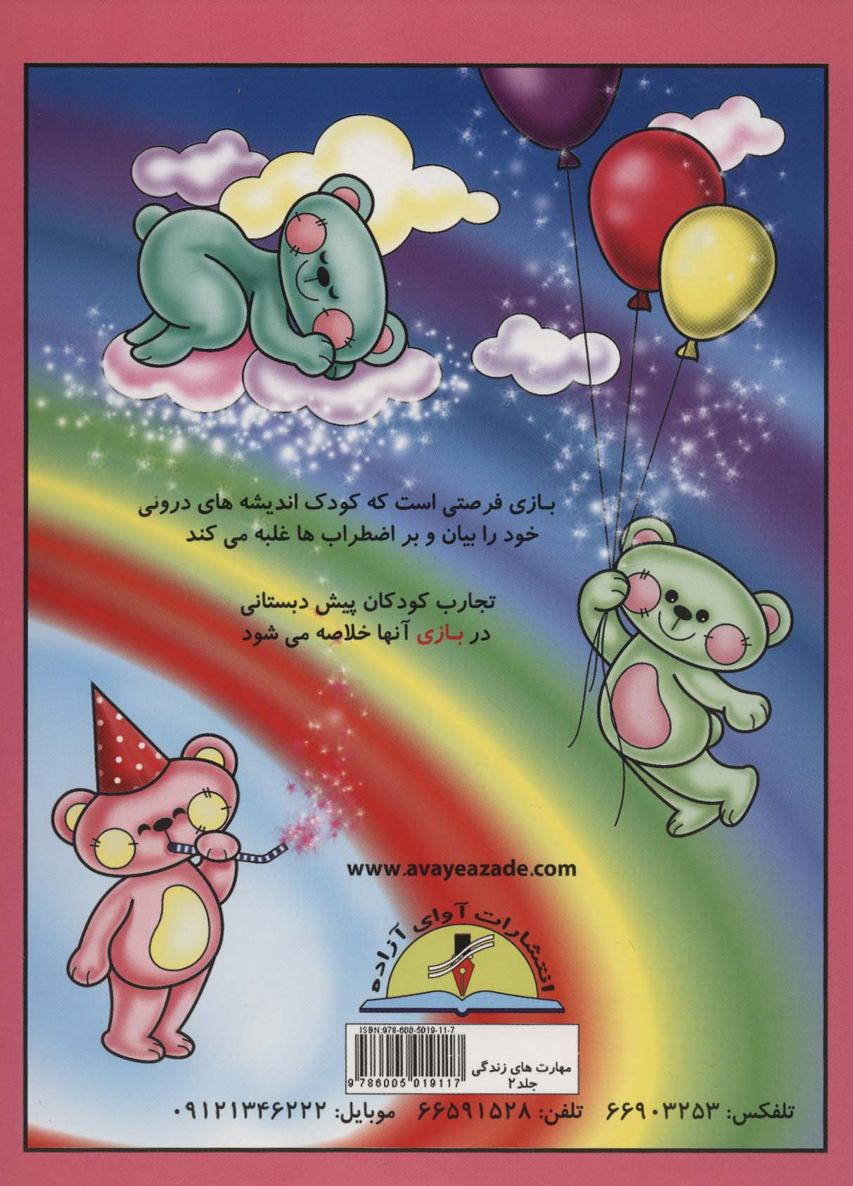 این کتاب که برای کودکان 5-6 سال تهیه وتدوین شده است شامل مفاهیم پایه مهارت های زندگی می باشد که لازم است هر فرد از کودکی با آن آشنا شود. این مفاهیم کلیدی اگر درست و اصولی به کودکان آموزش داده شود، نه تنها گذر کودک از مرحله کودکی را سهل و هموار می سازد، بلکه آنان رادر برابر مسائل و مشکلات زندگی مقاوم خواهدساخت . این کتب شامل مفاهیم زیر می باشد: همکاری با والدین و دیگران، احسان و نیکو کاری، انجام وظایف شخصی، رعایت نکات بهداشتی و ایمنی، اجتماعی بودن، آشنایی با نظم و ترتیب سلام کردن، رعایت حقوق دیگران، خوب گوش دادن به حرف بزرگتر ها، مهربان بودن با دوستان و هم بازی ها و...