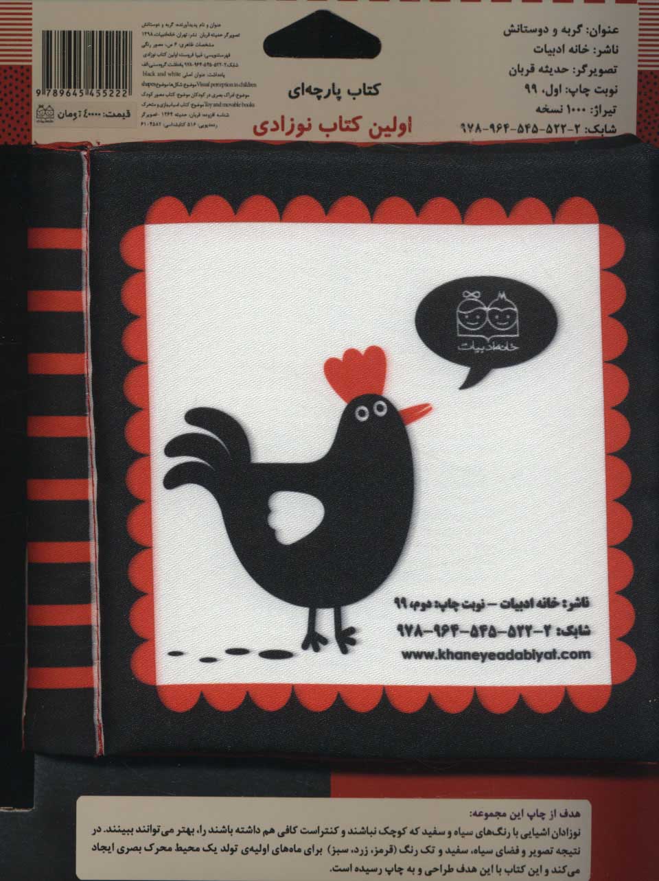 پژوهشها نشان دادهاند که نوزاد در ماههای اول زندگی فقط میتواند سایههایی از رنگ سیاه و سفید را ببیند. به این دلیل یک تم تکرنگ پر شده از اشکال و الگوهای متضاد، نوزاد تازه متولد شده را به بهترین شکل بر میانگیزاند. این کتاب با تضاد سیاه و سفید و تکرنگ قرمز به تحریک پیشرفت در شبکیه و عصب بینایی آنها کمک میکند.