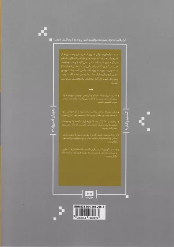 در تجارتهای جهانی امروز که زمان و هزینه از ضروریات هستند موعدهای کوتاه و انتظارات قاطع دیگر عادی شده است، پس لازمهی موفقیت چیست؟ این کتاب راهنمایی است عملی که شما را با اصول مدیریت پروژه آشنا میکند و شیوهی عملی کردن آنها را به شما یاد میدهد تا بتوانید پروژهی خود را از آغاز تا پایان باموفقیت مدیریت کنید. مدیریت پروژهی 101 دربارهی کی، چی، و چرای پروژهی خود بیشتر بدانید و ببینید چگونه میتوانید موفقیت پروژهی خود را تضمین کنید. چشمتان را از ساعت برندارید یاد بگیرید چگونه با زمانبندی و بودجهبندی بینقص، پروژهتان از مسیر خود خارج نشود. تیم خود را به کار گیرید با انواع فراوان نکتهها و توصیههای عملی، بازیگران اصلی را شناسایی کنید و آنها را در پروژه مشارکت دهید. تا آخرش بروید با بهرهگیری از بهترین شیوهها برای پیگیری، تحلیل، و تنظیم گزارش فعالیتهای پروژه موفقیت پروژهی خود را قطعی کنید. یک مرحله بالاتر از دیگران باشید با استفاده از فناوری و مدیریت ارزش کسبشده مهارتهای خود را یک سطح بالاتر ببرید.