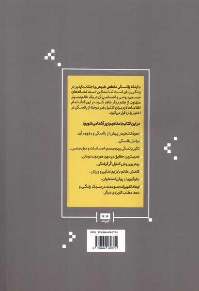 با اینکه یائسگی مقطعی طبیعی و اجتنابناپذیر در زندگی زنان است، ممکن است نشانههای جسمی، روحی و احساسی آن در یک خانم بسیار متفاوت از خانم دیگر باشد. بهعلاوه، اطلاعات «کارشناسانه»ای که هر روزه در مورد مزایا، خطرات و عوارض جانبی در اختیار زنان قرار میگیرد تصمیمگیری آگاهانه در مورد نحوهی مواجهه با علایم یائسگی را برای آنها دشوار میسازد. کتاب یائسگی به زبان آدمیزاد، که توسط گروهی از کارشناسان آشنای امر به رشتهی تحریر درآمده، تمام اطلاعات لازم را برای کنترل هر مرحله از یائسگی در اختیار زنان قرار میدهد. به عبارت ساده، این کتاب به نقش یائسگی در مشکلات بهداشتی مختلف و رایج مانند پوکی استخوان، سکتهی مغزی و بیماریهای قلب میپردازد، خانمها را از اقدامات ثابتشده برای کاهش خطر عوارض از طریق رژیم غذایی و ورزش، مدیریت استرس، هورموندرمانی و سایر روشها مطلع میسازد.