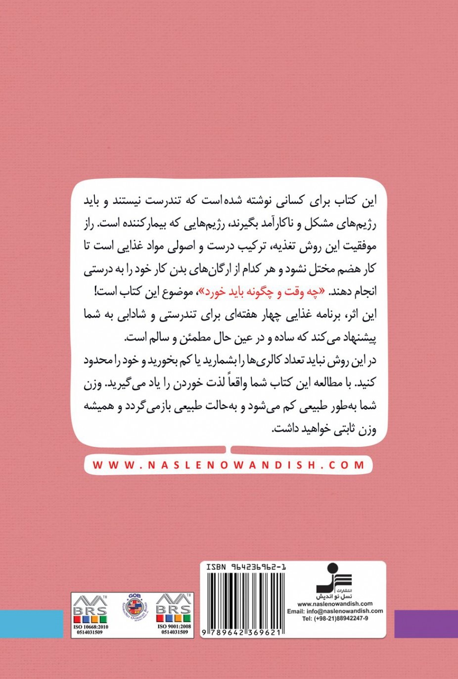 این کتاب برای کسانی نوشته شده که به یک رژیم غذایی مناسب، حاصل از ترکیب درست و اصولی موادغذایی و رعایت زمان و چگونگی خوردن نیاز دارند، تا بدون پیروی از رژیم های سخت و طاقت فرسا که عموما صدمه های جبران ناپذیری به سلامتی وارد می سازند ضمن لذت بردن از خوردن به تندرستی، نشاط و وزن مناسب برسند.