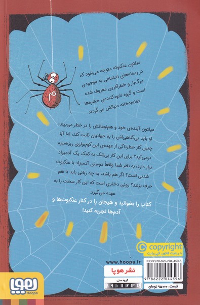 میلتون عنکبوته متوجه میشود که در رسانههای اجتماعی به موجودی مرگبار و خطرآفرین معروف شده است و گروه نابودکنندهی حشرهها خانهبهخانه دنبالش میگردند. میلتون آیندهی خود و همنوعانش را در خطر میبیند؛ او باید بیگناهیاش را به جهانیان ثابت کند، اما آیا چنین کار خطرناکی از عهدهی این کوچولوی ریزهمیزه برمیآید؟ برای این کار بیشک به کمک یک آدمیزاد نیاز دارد؛ به نظر شما واقعا دوستی آدمیزاد با عنکبوت شدنی است؟ اگر هم باشد، به چه زبانی باید با هم حرف بزنند؟ زوئی دختری است که این کار سخت را به عهده میگیرد. کتاب را بخوانید و هیجان را در کنار عنکبوتها و آدمها تجربه کنید!